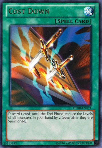 Mystical Space Typhoon Kaiba: Pot of Greed, Cost Down, Different Dimension Dragon, Attack Guidance Barrier Dartz: Twin Bow Centaur, Orichalcos Malevolence, Orichalcos Tritos |