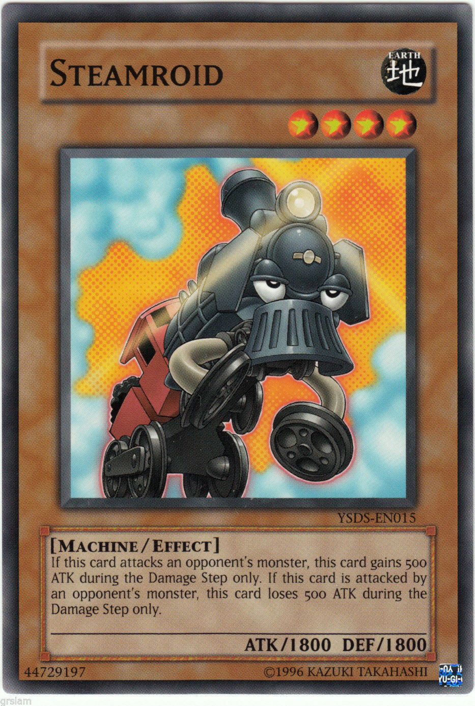 He attacks Steam Gyroid, destroying it and putting Jaden and Syrus' LPs to 6450. Finally, he sets a card and ends his turn. Jaden draws. Some of his cards have been modified for US as shown at 15:28 into the episode. He summons Elemental Hero Clayman (0800) in Attack Mode then uses Poly to bring out Elemental Hero Rampart Blaster (2500) in Defense Mode. He attacks directly with Rampart Blaster's effect. Oops! Rampart Blaster is shown in the US to be on top of Clayman's card instead of her own at 16:22 into the episode!