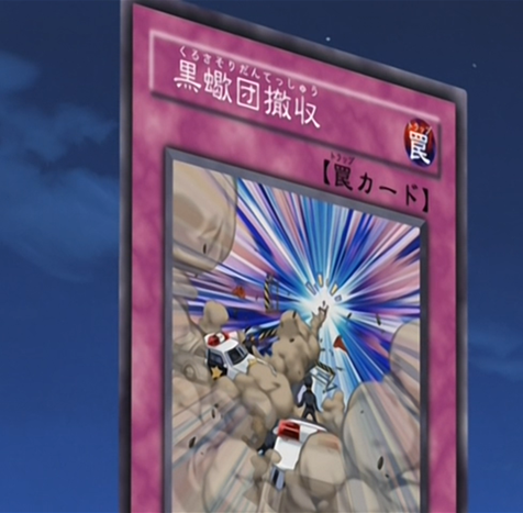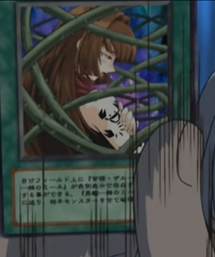 Inside a cave-like structure, a group is talking about the fact that their "boss" is coming home and everything is in place. On a boat, their "boss" is heading towards DA. At DA, Jaden asks Alexis how things are with her brother and she responds so-so. What brings them here? Banner says the law as he figured that since 3 of the spirit gates have been unlocked, he thought they should call the police (although the man next to banner isn't wearing a police-type uniform.) The man, whom decides to be called "Detective Zaloog") suggests they hide the keys. Once hidden, he tells them all to sleep. Later that night, someone sneaks in and takes Alexis case with her valuables in it. Chazz awakens to Syrus and Jaden trying to tell him something but he can't hear them due to the earplugs in his ears. After repeating their story, they decide they must tell the others. Everyone says their story but it's followed by the cleaning up of the evidence. Chazz then exclaims its the other people but no one believes him so he shows them someone who did catch them, his Ojama cards, none of which can see the spirits but Chazz. Zaloog then says it's all of their group and that they are known as the Dark Scorpions. They have all the keys! Chazz smiles saying that to use them they have to defeat Chazz so they duel. Zaloog plays Golem Sentry (1800) in Defense Mode and 1 card face down to end his turn. Chazz plays Fiend's Sanctuary, giving him a Metal Fiend Token (0000) in Attack Mode, which he tributes for Armed Dragon LV5 (2400) in Attack Mode. He attacks and destroys GS, then sets 2 cards and uses AD LV5's effect, which as he and Jaden explain, lets him summon Armed Dragon LV7 (2800) in Attack Mode. Zaloog says he can level it up all he wants, it won't matter for he plays Pot of Greed for 2 cards. Next he plays himself, Don Zaloog (1400) in Attack Mode. Then he plays Mustering of the Dark Scorpions, letting him play all the Dark Scorpion monsters in his hand so he brings out Gorg the Strong (1800), Meanae the Thorn (1000), Cliff the Trap Remover (1200) and Chick the Yellow (1000) all in Attack Mode. Then he activates a Trap Card (Dark Scorpion Combination). Since he controls all the Dark Scorpions on the field, they can attack directly but their damage becomes 400. Chazz's score drops to 2000. Now their effects activate, which by Gorg's effect returns a monster Chazz controls to the top of his deck, by Chick's effect returns a card Chazz controls to his hand, by Cliff's effect, the top 2 cards of Chazz's deck go to his Grave, by Don's effect a card in Chazz's hand is destroyed and finally by Meanae's effect, they can add a Dark Scorpion card from the Grave to their hand. Chazz activates one of his face down cards, Level Modulation, letting him bring back Armed Dragon LV7 and giving Don 2 cards. Curiously, at 13:14 into the episode, both versions show LM as a Trap Card instead of a Spell Card. Don sets 2 cards face down. Chazz uses LV7's effect by discarding Despair from the Dark but Don activates Retreat of the Dark Scorpions, returning them to his hand. Chazz attacks directly, dropping Don's score to 1200. The other DS claim they will get him back. Don plays himself in Attack Mode. Next he uses Mustering of the Dark Scorpions but Chazz activates Ojama Trio, giving Don 3 Ojama tokens. Don still brings out Meanae then uses Dark Scorpion - Tragedy of Love, which sends Meanae to the Grave and destroys all of Chazz's monsters. Since Chazz is wide-open, he attacks directly, bringing Chazz down to 600. With his own effect, Chazz loses a random card and it's one he doesn't mind losing for it's Ojamagic, which lets him add the 3 Ojamas from his deck to his hand since it was sent to the Graveyard. Chazz plays Pot of Greed, allowing him to draw twice.