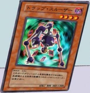 X starts with Card Destruction, forcing both of them to discard their hands and redraw and equal amount of cards. Next, he uses Elegant Light Level 4 (whose effect apparently activates when sent to the Graveyard by a card effect, though the card itself is never shown), allowing him to summon a Level 4 monster from his deck and he chooses Trap Sluzer (0800) in Attack Mode. X sets 2 cards to end his turn. Syrus says that while annoying, X is a good duelist. Aster says they don't know the half of it, X is Sartorius' attorney, is undefeated and isn't known for his honesty. He says the last time someone attempted to defeat X was thrown in prison for 7 years due to disorderly dueling. Syrus feels Jaden's doomed. Jaden plays Elemental Hero Sparkman (1600) in Attack Mode. X says Jaden's out of order and activates Monster Register by paying 1000 Life Points, leaving him with 3000, and explaining that Jaden loses 4 cards since Sparkman was Level 4. Jaden says they're his best cards. (Hardly, Jaden, you have better cards than those, like your Sparkman.) X says that his TS makes him immune to Trap Cards. (Why didn't he announce that when the card was summoned?) Aster explains X's dueling style to the rest of the gang. Jaden attacks with Sparkman but X activates Threatening Roar, ending Jaden's turn. (This is probably based on the assumption that if you can't attack, you're done with your turn but as we've seen in previous episodes and in the CG, this is most often not the case.) X tells Jaden he has much to learn about the real world, saying dueling is work but he wouldn't expect Jaden to understand. X sets 2 cards and 1 monster to end his turn. (First time this has happened in quite a while, probably since the original series) Jaden knows he's going to lose cards but he must play monsters and uses Poly to summon Elemental Hero Flame Wingman (2100) in Attack Mode and due to MR, he loses 6 cards. (They seem to have corrected/changed FW's level to match the CG's version.) Jaden attacks with FW, destroying the face down monster (Level Pod in the Japanese) (0500) in Defense Mode and triggering not only its own effect but the hidden monsters' too, leaving X with 2500. (Why didn't he just attack TS? It'd deal more damage to X and it's a monster Jaden at least has some knowledge about.) Due to the effect of X's monster , all monsters on the field are returned to their decks and they each draw cards equal to the total Level of the monsters returned to the decks. If at least one monster is drawn, the controller can keep the cards but if not, they go to the Grave. Jaden inspects his hand and gets to keep his cards. Oops! Major goof here! Several cards in his hand aren't his in the US version! The rest of his cards have been changed to different cards he uses in the US as shown at 9:35 into the episode.