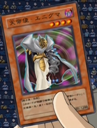 Unfortunately, Aster's time inside is short-lived as he's kicked out shortly after. Inside (what looks to be) Sheppard's office, Jaden and Hassleberry appear to be watching some kind of kids program when Crowler and Bonaparte arrive, asking what they are doing here. The Slifer Red Dorm has no TV and both Jaden and Hassleberry didn't want Sheppard's widescreen TV to go to waste. They flip the channel to find that The D, who turns out to be Aster's stepfather. Aster flashes back to his childhood with The D and his younger self asks The D to teach him how to duel. At the Kaiba Dome, home of the dueling site, the announcer introduces the challenger as Doctor Collector and, of course the champion, The D. The D draws and plays Enigma the Creator (1200) in Defense Mode and 1 card face down to end his turn. Doctor Collector (whom I'll now call DC) was hoping he'd say that and draws, playing Dimensional Fissure, removing from play any monsters normally sent to the Graveyard. Next he plays Graceful Charity to draw 3 cards, then discard 2, both of which are monsters so they get RFG.