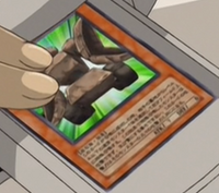 Inside his room, Axel makes a meal out of plenty of burgers and what looks to be orange juice. If he doesn't get his energy back after this, they've got problems. He has never gotten this run down after a duel. Just outside, Adrian wonders why everyone thinks out loud at DA, then figures he knows what's causing Axel's sudden fatigue and he bets it's just the beginning. Back at the hospital, Hassleberry asks for a bite but Jaden isn't willing to give him any. Alexis suggests Jaden come up for air but again Jaden isn't listening. Ms Fontane comes in, saying Jaden should be fine according to their latest test results but she orders Jaden not to do anything strenuous, just as Jaden swallows two trays worth of hospital food at once. Is eating considered strenuous? Before we get an answer, Jaden bolts out the door with Syrus close behind. Ms Fontane tells Alexis and Blair that Jaden will be fine but he is not to duel for two weeks. Jaden is looking for a duel when Jesse shows up, telling about a rumor he heard about Jaden retiring dueling for good. Hassleberry gets a bite in the rear from Shirley, Jim's pet crocodile. Jim shows them an instrument used to measure the vibrations in the atmosphere and they go off to find the source. Adrian says that the gig is up for Viper as Viper himself sees Jim on his camera, saying that he's found his next donor. Suddenly, Shirley starts growling so Jim covers her eyes with his bandana. Jim doesn't like the comment from Jaden about not being the time to speak Australian. Now it's Hassleberry's turn to go berserk and he takes after Jim personally. Jaden explains about Hassleberry's accident and possession of dino DNA so they decide to duel and Jim warns that he'll do whatever it takes to bring Hassleberry back to normal and isn't going to be responsible for Hassleberry's behavior. Speaking of Hassleberry, he starts the duel with Gilasaurus (1400) in Attack Mode. Oops! At 7:45 into the US episode, Gilasaurus is a Normal Monster!