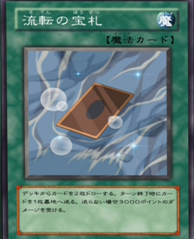 Hassleberry decides to attack and right as he thinks his monster has won it gets destroyed leaving his score at 3400. He tells Jim that dino DNA can't be found in some textbook and draws, playing Babycerasaurus (0500) in Attack Mode. Jim ponders what Hassleberry is up to and finds out soon enough as Hassleberry plays Jurassic World, giving his Babycerasaurus 300 ATK, putting it at 800. Next he activates Volcanic Eruption, destroying all monsters on the field. Oops! It destroys all cards on the field because Jim's face down cards and Jurassic World are destroyed as well! Because his Babycerasaurus was destroyed, Hassleberry can play Sabersaurus (1900) in Attack Mode. Jim plays Dowsing Burn, bringing back one of Hassleberry's monsters and destroying Hassleberry's current monster. Next he plays Sample Fossil (????) in Attack Mode and uses its effect to bring Sabersaurus back as a fossil and absorb its ATK, putting its own ATK at 1900. Then he attacks Hassleberry directly with it, putting Hassleberry's score at 1500. Hassleberry draws and plays Card of Variation, letting him draw 2 cards. (What they don't tell you is you'll have to discard 1 card during the End Phase or take 3000 damage.)