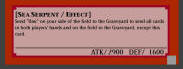 Sea Serpent Warrior of Darkness WATER / Sea Serpent / Level 4 / ATK 1800 / DEF 1500 A warrior who defends the world of the Sea of Darkness. He prides himself on his fighting prowess both on the ground and, of course, in the water. COMMON |