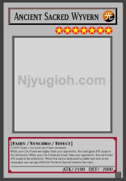 Ancient Sacred Wyvern LIGHT / Fairy-Type Synchro / Level 7 / ATK 2100 / DEF 2000 1 LIGHT Tuner + 1 or more non-Tuner monsters While your Life Points are higher than your opponent's, this card gains ATK equal to the difference. While your Life Points are lower than your opponent's, this card loses ATK equal to the difference. When this card is destroyed by battle and sent to the Graveyard, you can pay 1000 Life Points to Special Summon this card. SUPER RARE |