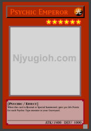 Psychic Emperor LIGHT / Psychic / Level 6 / ATK 2400 / DEF 1000 When this card is Normal or Special Summoned, gain 500 Life Points for each Psychic-Type monster in your Graveyard. ULTRA RARE |