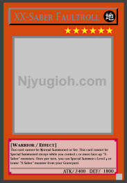 XX-Saber Faultroll EARTH / Warrior / Level 6 / ATK 2400 / DEF 1800 This card cannot be Normal Summoned or Set. This card cannot be Special Summoned except while you control 2 or more face-up "X-Saber" monsters. Once per turn, you can Special Summon 1 Level 4 or lower "X-Saber" monster from your Graveyard. RARE |