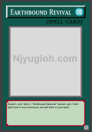 Earthbound Revival Normal Spell Discard 1 card. Select 1 "Earthbound Immortal" monster and 1 Field Spell Card in your Graveyard, and add them to your hand. SUPER RARE |