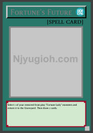 Fortune's Future Normal Spell Select 1 of your removed from play "Fortune Lady" monsters and return it to the Graveyard. Then draw 2 cards. RARE |