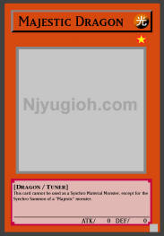 Majestic Dragon LIGHT / Dragon-Type Tuner / Level 1 / ATK 0 / DEF 0 This card cannot be used as a Synchro Material Monster, except for the Synchro Summon of a "Majestic" monster. COMMON |