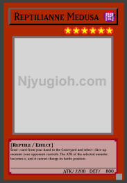 Reptilianne Medusa DARK / Reptile / Level 6 / ATK 2200 / DEF 800 Send 1 card from your hand to the Graveyard and select 1 face-up monster your opponent controls. The ATK of the selected monster becomes 0, and it cannot change its battle position. SUPER RARE |
