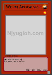 Worm Apocalypse LIGHT / Reptile / Level 1 / ATK 300 / DEF 200 FLIP: Destroy 1 Spell or Trap Card. SUPER RARE |