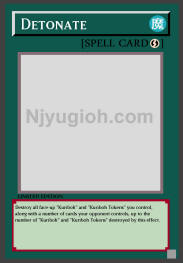 Detonate Quick-Play Spell Destroy all face-up "Kuriboh" and "Kuriboh Tokens" you control, along with a number of cards your opponent controls, up to the number of "Kuriboh" and "Kuriboh Tokens" destroyed by this effect. SUPER RARE |