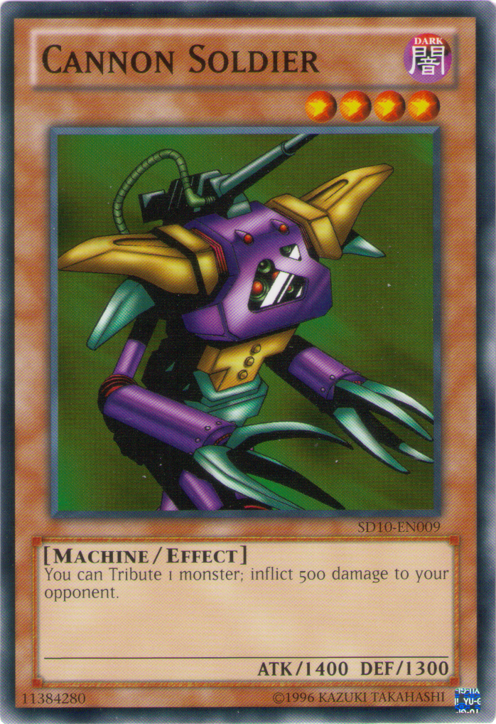 any Level without Tributing. 2. Cannon Soldier's effect let it attack directly by Tributing a monster the owner controlled. 3. Ring of Magnetism could also be equipped to a monster that had no ATK to lose. |