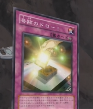 MD attacks, destroying Mermaid Knight and leaving the two girls with 1200 LPs. Next he plays Divine Chalice, summoning a token to MD's field, which he uses to destroy Rescue Cat. The girls decide to surrender as Alexis shows, telling them they're pathetic and a disgrace to Obelisk Blue students and girls everywhere.She decides to duel in their place with their own LPs. MD accepts Alexis' condition and sets 1 monster to end his turn. Alexis draws, activating Machine Angel Ritual to bring out Cyber Angel Benten (1800) in Attack Mode. MD isn't impressed, saying he's seen tougher soufflés but Alexis isn't done and plays Ritual Weapon, giving Benten 1500 ATK for a total of 3300. Oops still again! Benten's ATK is shown in a LP meter instead of it's correct graphic in the US at 13:45 into the episode.